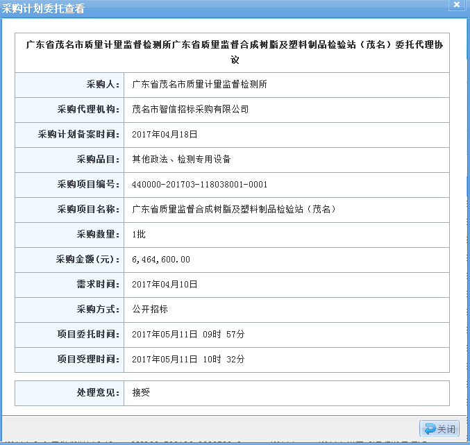 二、采購項(xiàng)目名稱:廣東省質(zhì)量監(jiān)督合成樹脂及塑料制品檢驗(yàn)站(茂名)