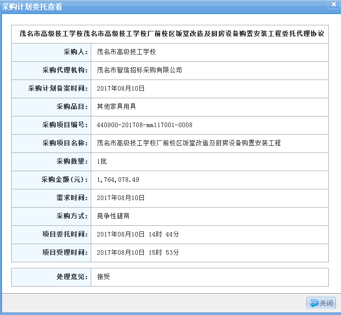 茂名市高級(jí)技工學(xué)校廠前校區(qū)飯?zhí)酶脑旒皬N房設(shè)備購(gòu)置安裝工程 |