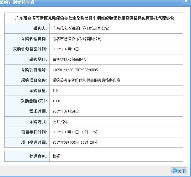 茂名市智信招標(biāo)采購有限公司 受 廣東茂名濱海新區(qū)黨政綜合辦公室的委托,對 采購公務(wù)車輛維修和保養(yǎng)服務(wù)資格供應(yīng)商 進(jìn)行公開招標(biāo)采購,歡迎符合資格條件的供應(yīng)商投標(biāo)。