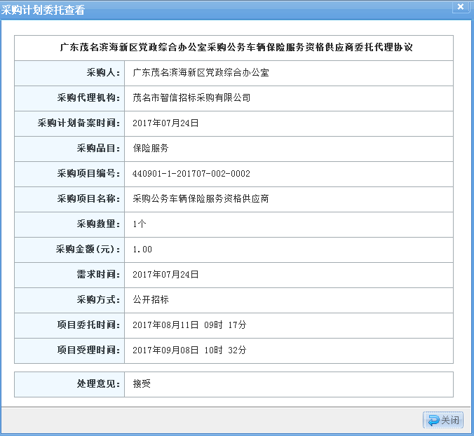 茂名市智信招標(biāo)采購(gòu)有限公司 受 廣東茂名濱海新區(qū)黨政綜合辦公室的委托,對(duì) 采購(gòu)公務(wù)車(chē)輛保險(xiǎn)服務(wù)資格供應(yīng)商 進(jìn)行公開(kāi)招標(biāo)采購(gòu),歡迎符合資格條件的供應(yīng)商投標(biāo)。