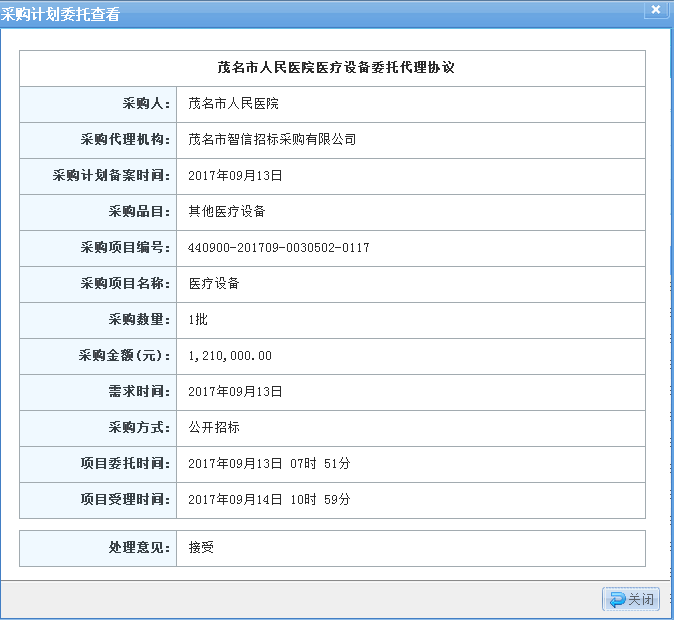 茂名市智信招標(biāo)采購(gòu)有限公司 受 茂名市人民醫(yī)院的委托,對(duì) 醫(yī)療設(shè)備 進(jìn)行公開(kāi)招標(biāo)采購(gòu),歡迎符合資格條件的供應(yīng)商投標(biāo)。