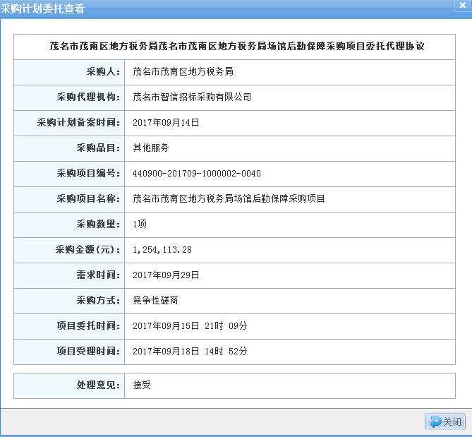 茂名市茂南區(qū)地方稅務(wù)局場(chǎng)館后勤保障采購(gòu)項(xiàng)目 |