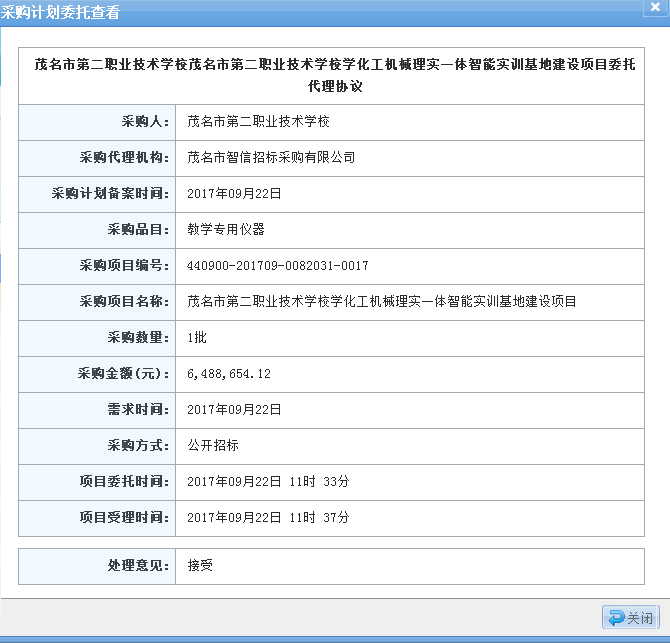 茂名市智信招標(biāo)采購(gòu)有限公司 受 茂名市第二職業(yè)技術(shù)學(xué)校的委托,對(duì) 茂名市第二職業(yè)技術(shù)學(xué)校學(xué)化工機(jī)械理實(shí)一體智能實(shí)訓(xùn)基地建設(shè)項(xiàng)目 進(jìn)行公開招標(biāo)采購(gòu),歡迎符合資格條件的供應(yīng)商投標(biāo)。
