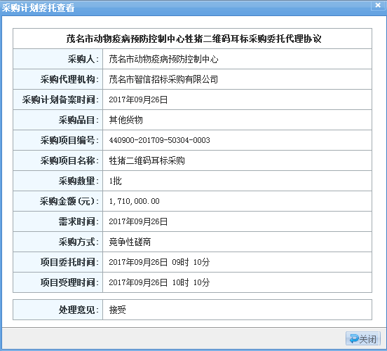 茂名市智信招標(biāo)采購有限公司 受 茂名市動(dòng)物疫病預(yù)防控制中心 的委托,擬對 牲豬二維碼耳標(biāo)采購 進(jìn)行競爭性磋商,歡迎符合資格條件的供應(yīng)商參加。本項(xiàng)目將優(yōu)先確定符合相應(yīng)資格條件的自主創(chuàng)新產(chǎn)品、節(jié)能產(chǎn)品、環(huán)保產(chǎn)品供應(yīng)商參加談判。