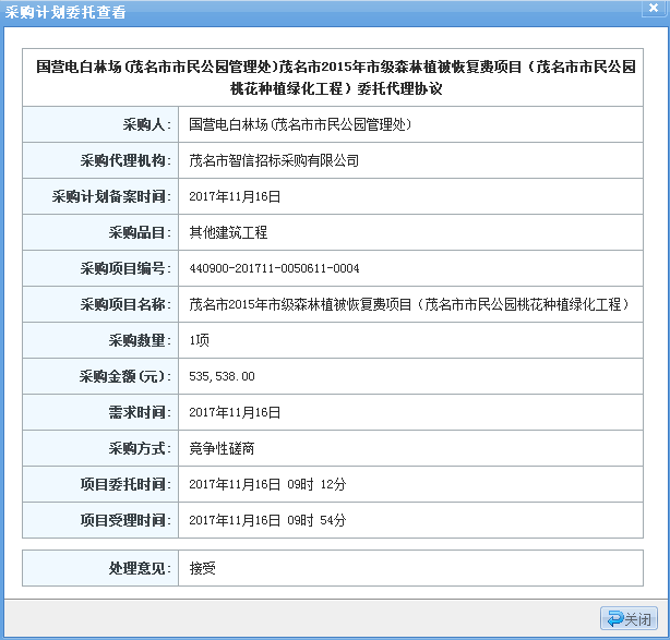 | (三)采購人:國營電白林場(茂名市市民公園管理處) | 地址:廣東省茂名市電白縣林頭鎮(zhèn)章班村委會(huì) |