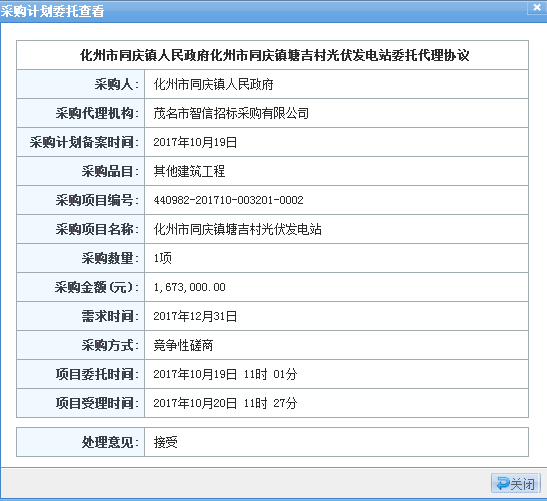 二、采購項目名稱:化州市同慶鎮(zhèn)塘吉村光伏發(fā)電站