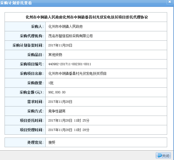 二、采購項(xiàng)目名稱:化州市中垌鎮(zhèn)番昌村光伏發(fā)電扶貧項(xiàng)目