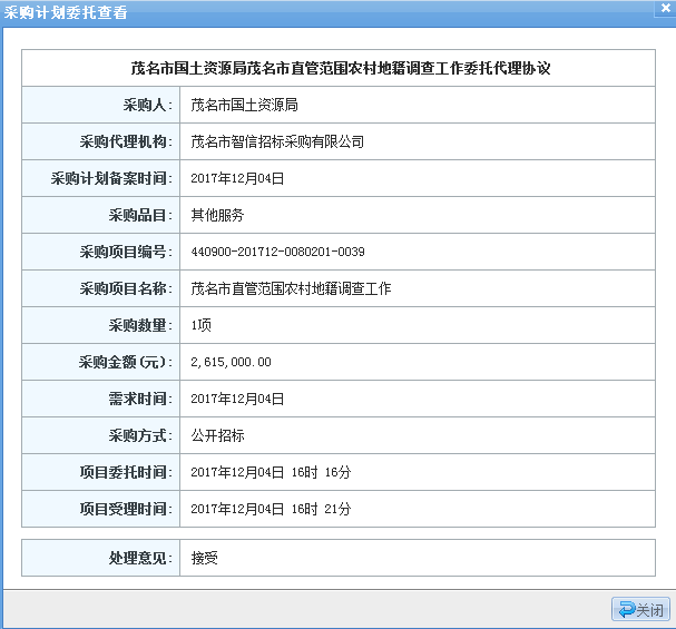 茂名市智信招標(biāo)采購有限公司 受 茂名市國土資源局的委托,對 茂名市直管范圍農(nóng)村地籍調(diào)查工作 進(jìn)行公開招標(biāo)采購,歡迎符合資格條件的供應(yīng)商投標(biāo)。