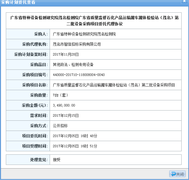 廣東省質(zhì)量監(jiān)督石化產(chǎn)品運(yùn)輸罐車罐體檢驗站(茂名)第二批設(shè)備采購項目 |