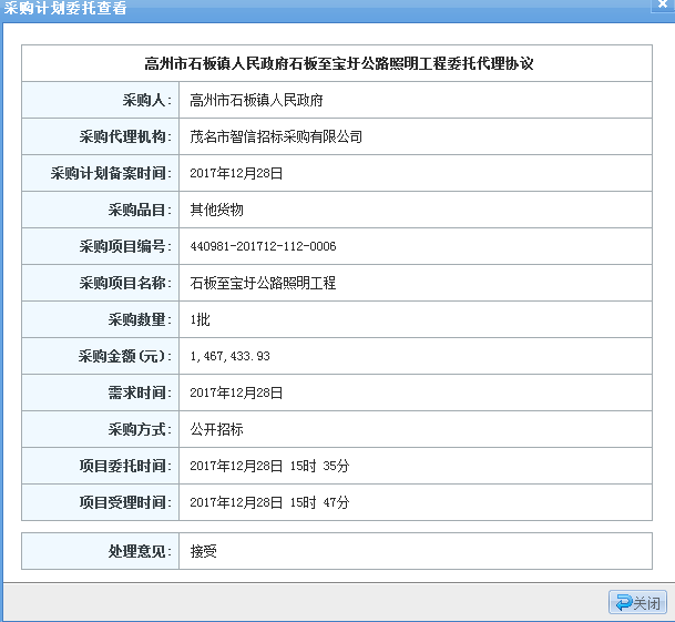 茂名市智信招標(biāo)采購有限公司 受 高州市石板鎮(zhèn)人民政府的委托,對 石板至寶圩公路照明工程 進(jìn)行公開招標(biāo)采購,歡迎符合資格條件的供應(yīng)商投標(biāo)。
