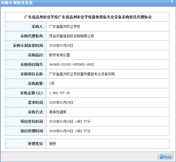 廣東省高州農(nóng)業(yè)學(xué)校畜牧獸醫(yī)專業(yè)設(shè)備采購