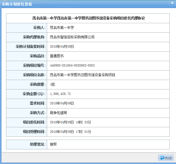 茂名市第一中學(xué)圖書(shū)及圖書(shū)館設(shè)備采購(gòu)項(xiàng)目 |