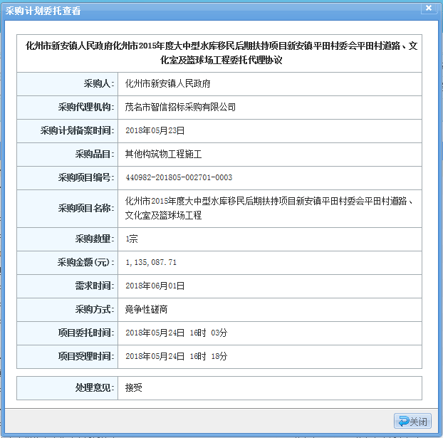 化州市2015年度大中型水庫移民后期扶持項目新安鎮(zhèn)平田村委會平田村道路、文化室及籃球場工程 |